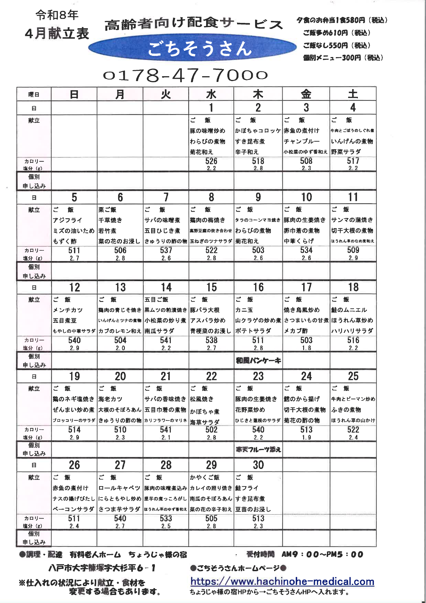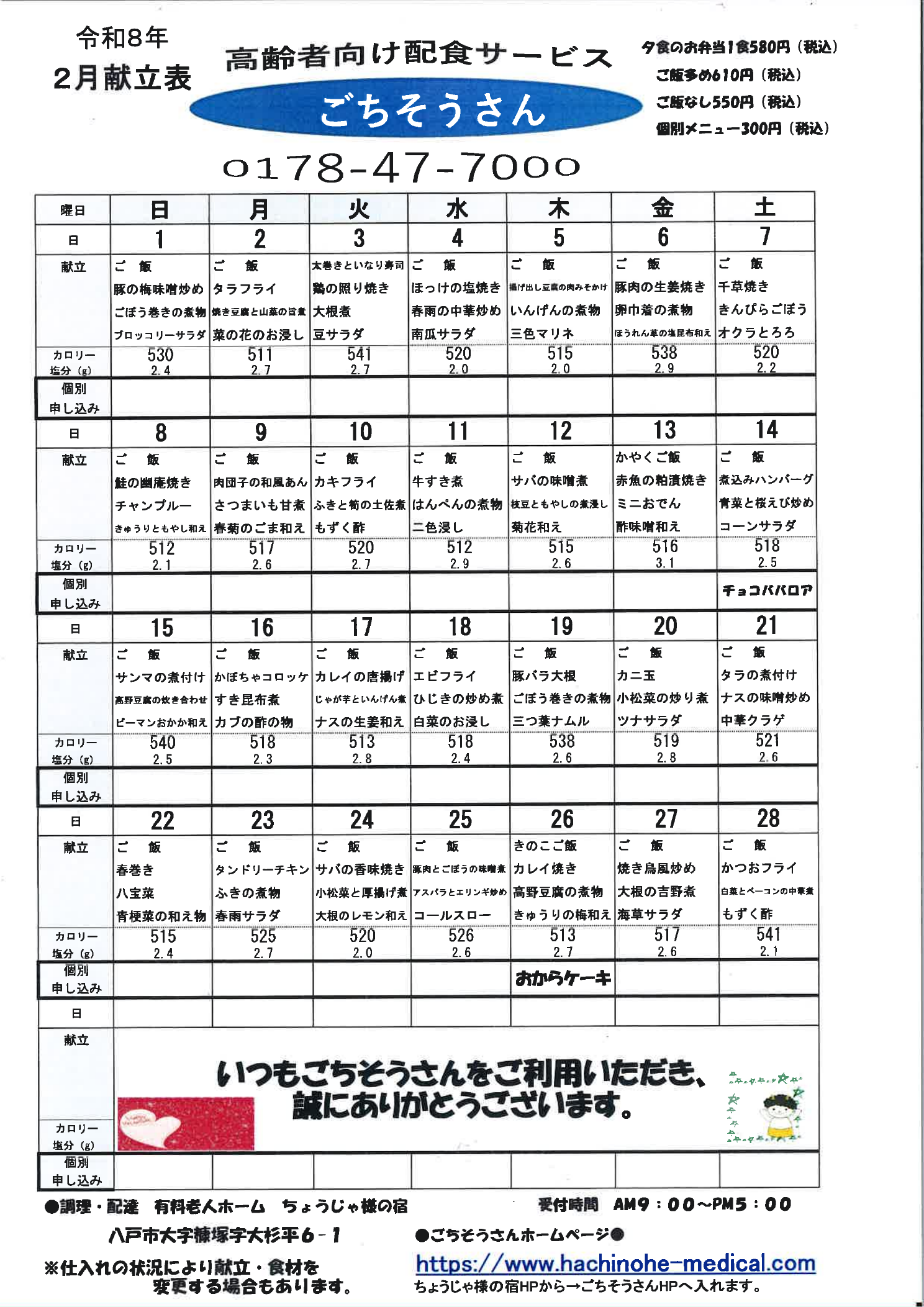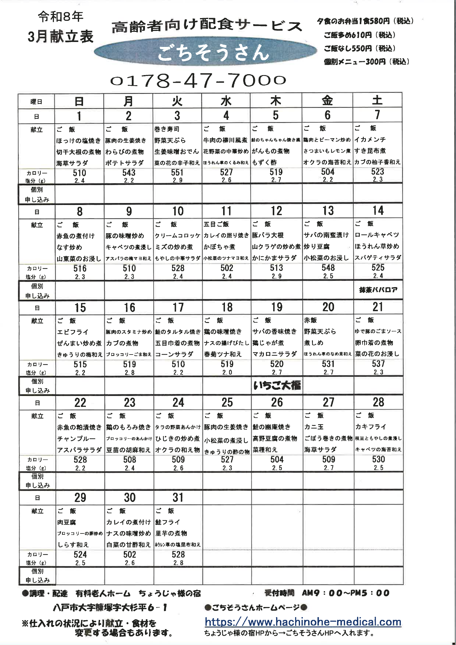 お弁当に貼られているチラシを60枚集めると、月に一度「ちょうじゃ様の宿特製デザート」がプレゼントになります。
